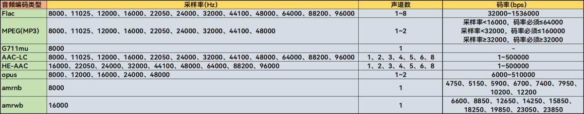 // opus编码支持采样率:8000、12000、16000、24000、48000