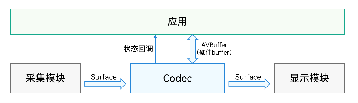 在编码和解码过程中,通过回调函数通知应用数据处理的情况;如编码过程通过回调通知应用,完成一帧编码,输出编码结果AVBuffer;在解码过程通过回调通知应用输入一帧码流到解码器解码,当解码完成也会通过回调通知应用解码完成,应用可以对数据做后续处理。