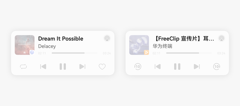 音乐/听书类应用,如应用内支持播放模式的切换,可按需适配播控的循环模式切换功能。