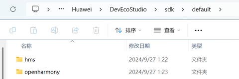 在DevEco的安装目录下,会有hms和HarmonyOS两个目录: