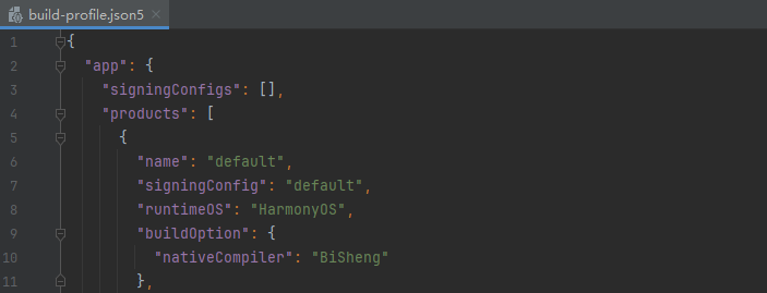 - 开发者获取DevEco Studio 5.1.1 beta及之前的版本,默认使用还是开源llvm编译器,需要在HarmonyOS应用的工程级build-profile.json5中简单配置即可使用毕昇编译器:在runtimeOS为HarmonyOS的时候,设置nativeCompiler为BiSheng,即可使用毕昇编译器构建HarmonyOS工程的C/C++代码。