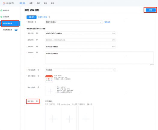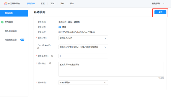 创建完成后,填写服务的基本信息,点击保存按钮。
