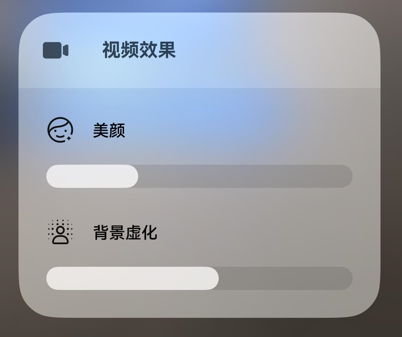 点击视频效果图标,在弹出的二级页面中,用户可调节控制器支持的效果,如图所示为美颜和背景虚化。