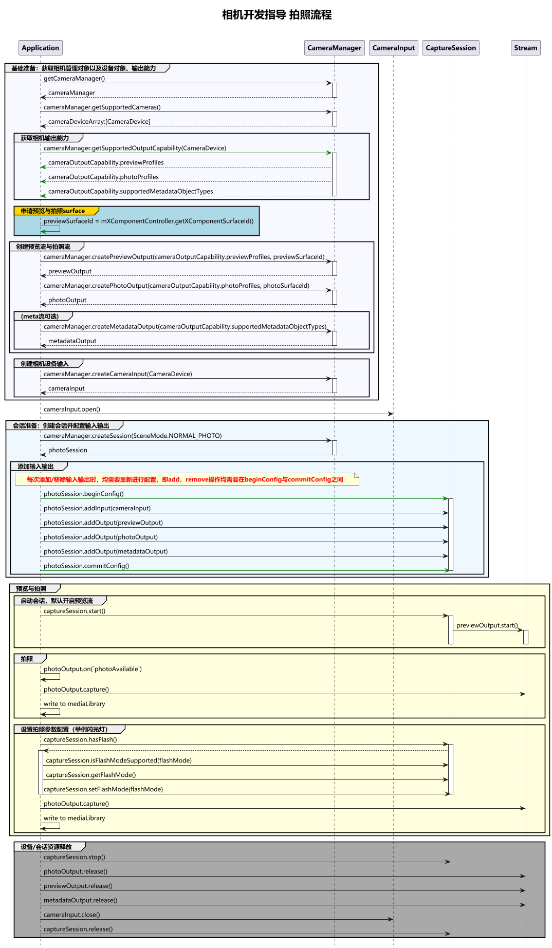 当前示例提供完整的拍照流程介绍,方便开发者了解完整的接口调用顺序。