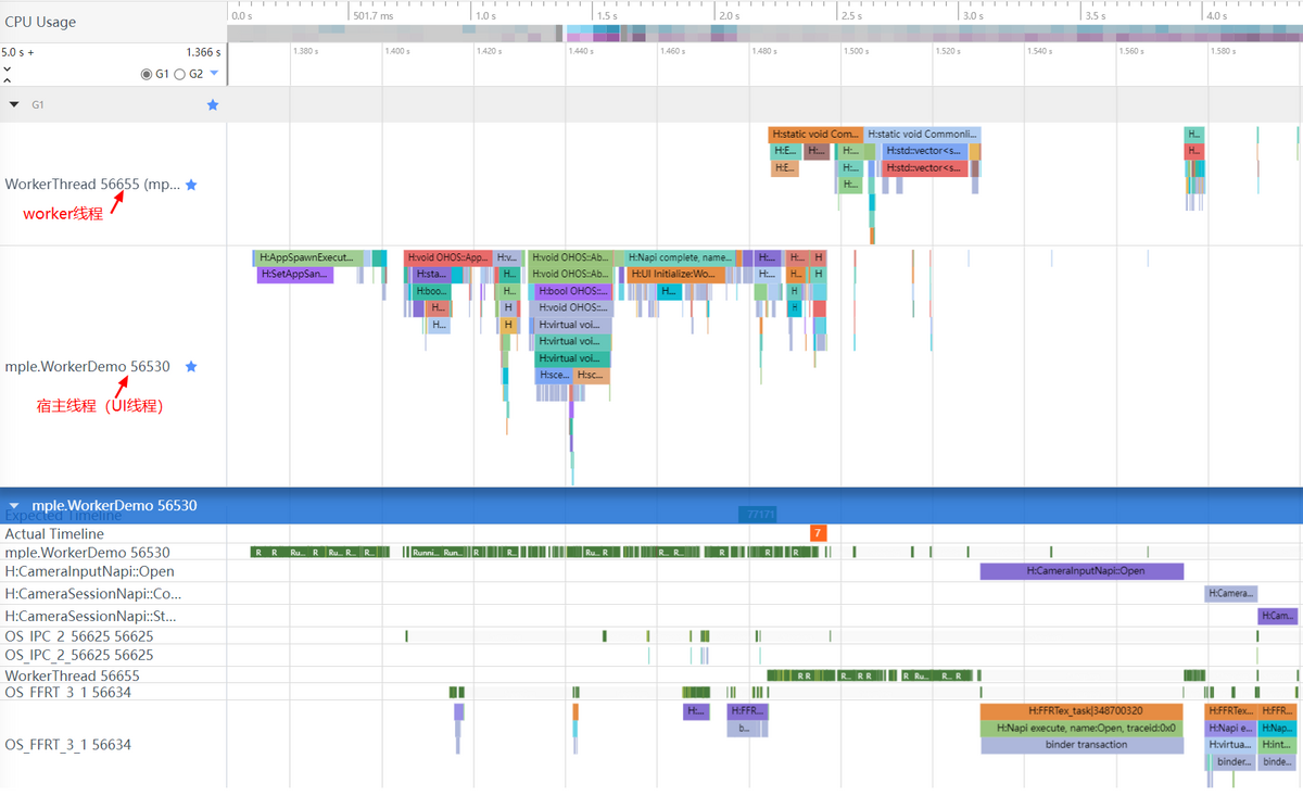 通常开发者使用相机功能需要创建相机会话,并持续接收处理预览流、拍照流、录像流等从而实现相关相机功能,这些密集型操作如果都放在主线程即UI线程,可能会阻塞UI绘制,推荐开发者在worker线程中实现相机功能。