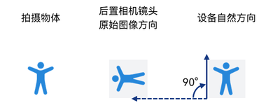 此时图像需要顺时针旋转90度,才能与设备自然方向保持一致,所以后置相机的镜头角度为90度。