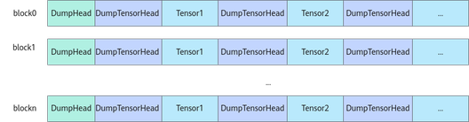 Dump时,每个block核的dump信息前会增加对应信息头DumpHead(32字节大小),用于记录核号和资源使用信息。每次Dump的Tensor数据前也会添加信息头DumpTensorHead(32字节大小),用于记录Tensor的相关信息。如下图所示,展示了多核打印场景下的打印信息结构。