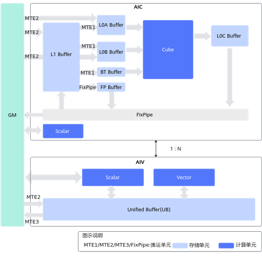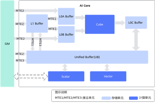 - 包含2个内存单元:GM(核外)、UB。