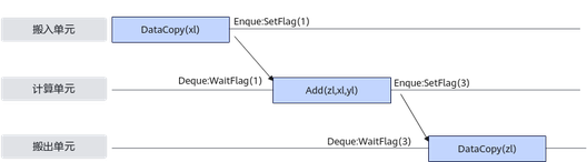 AscendC编程范式就是这样一种流水线式的编程范式,把算子核内的处理程序,分成多个流水任务,通过队列(Queue)完成任务间通信和同步,并通过统一的资源管理模块(Pipe)来统一管理内存、事件等资源。