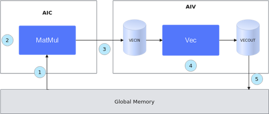 - Vector的输出可以作为Cube的输入:VECOUT->A1->A2、VECOUT->B1->B2