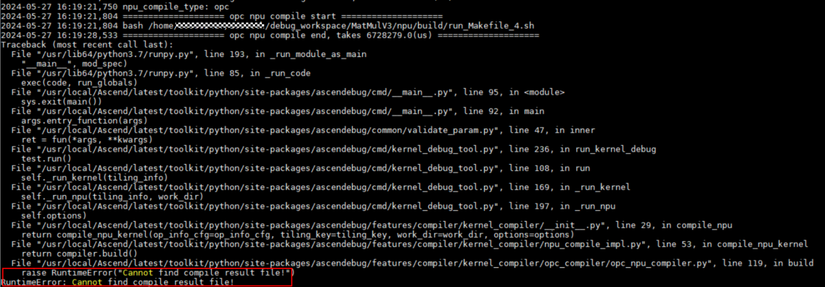 NPU编译失败提示RuntimeError: Cannot find compile result file
