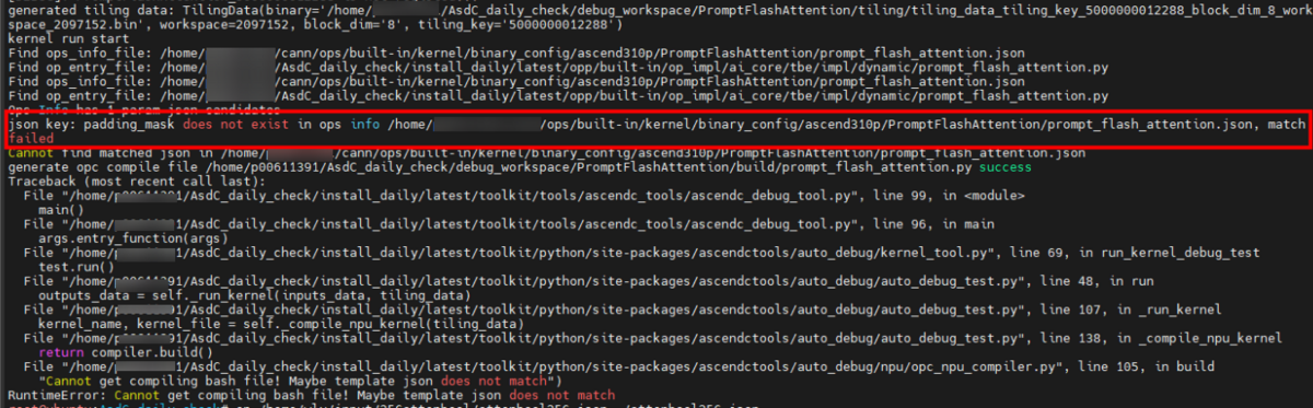 NPU编译失败提示RuntimeError: Cannot get compiling bash file! Maybe template json does not match