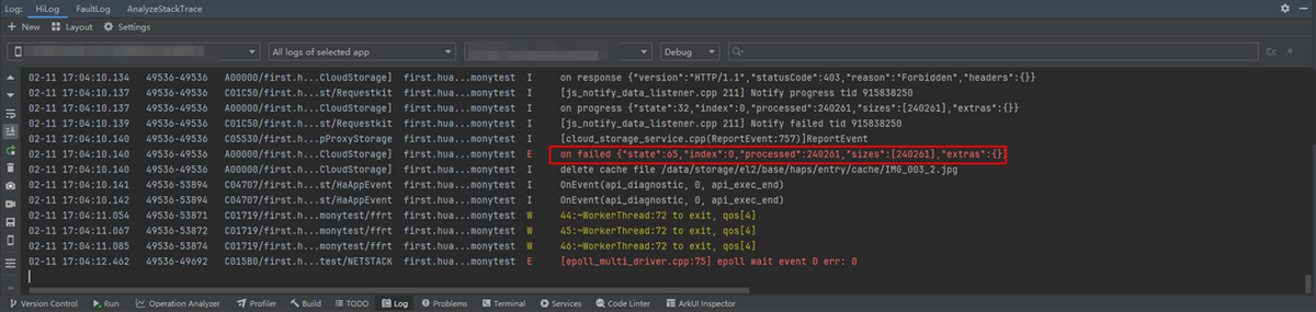 upload进程的日志提示“403 Forbidden”(通过设置“No filters”模式、过滤“C01C50”关键字查找)