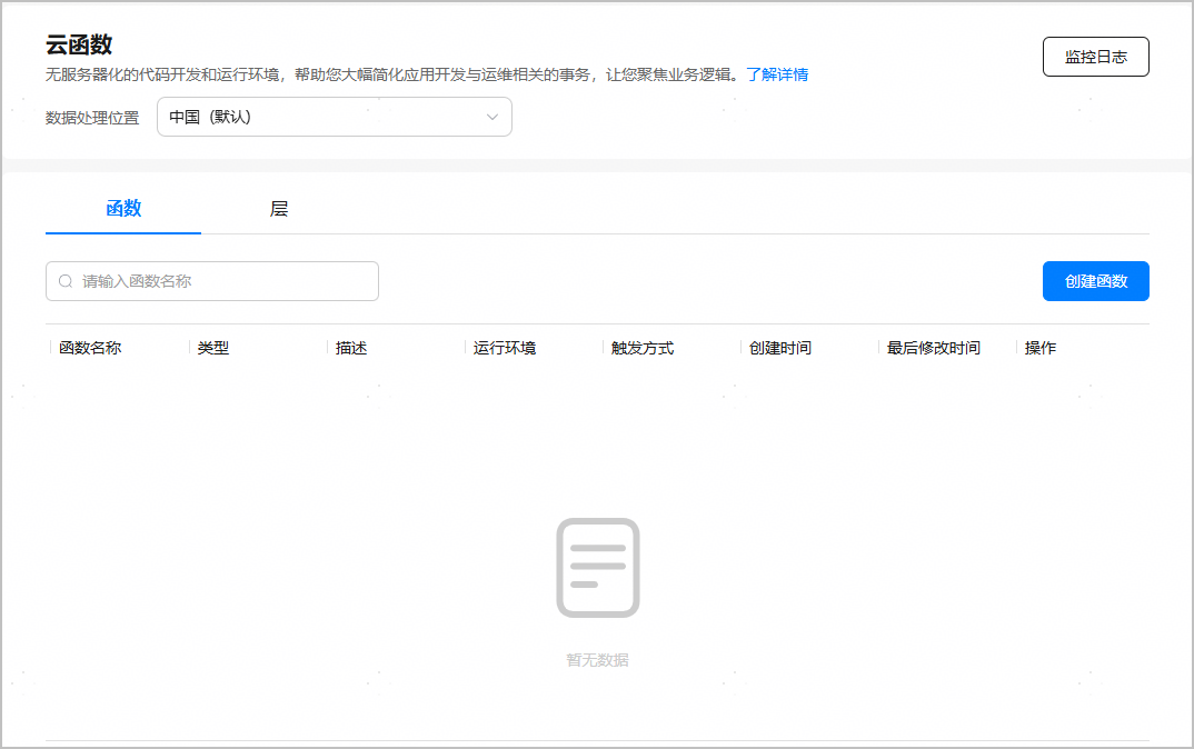 选择“函数”页签,点击“创建函数”。