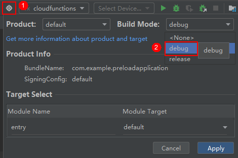 设置HAP包的“Build Mode”为“debug”,且已申请调试证书。