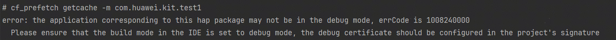 | -m | M | 应用包名。此处的包名需要与您在AppGallery Connect中创建应用时配置的包名保持一致。 | cf_prefetch getcache -m com.huawei.hms.xs.test |
