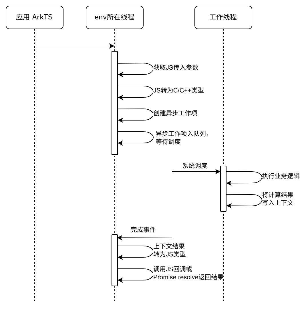 - 文件操作:读取大型文件或执行复杂的文件操作时,可以使用异步工作对象来避免阻塞env所在的ArkTS线程。