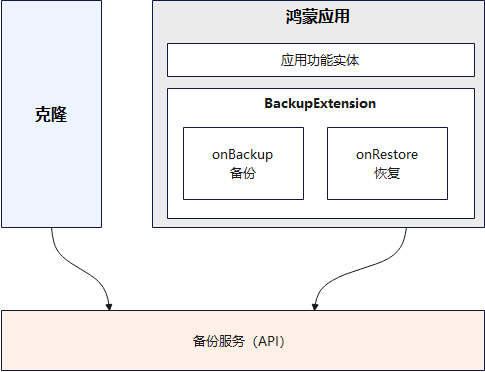 用户在日常换机过程中,需要将一台设备的数据备份并发送到另一台设备上进行恢复,以完成跨设备的数据迁移,此时需要使用克隆工具("数据克隆"应用)。接入克隆工具时,应用需实现备份恢复接口BackupExtensionAbility,在onBackup中实现数据备份,在onRestore中实现数据恢复。若应用未实现BackupExtensionAbility,克隆过程将仅迁移旧设备上的应用,而不迁移应用数据。