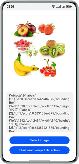 // 调用多目标检测接口let request: visionBase.Request = {inputData: { pixelMap: this.chooseImage }};let data: objectDetection.ObjectDetectionResponse = await (await objectDetection.ObjectDetector.create()).process(request); -