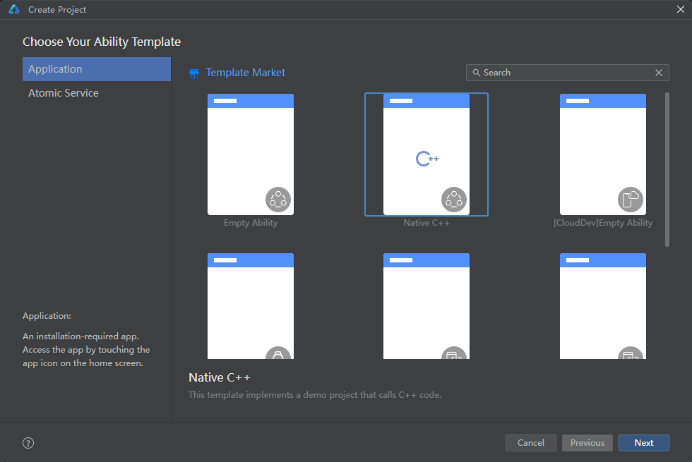 下面通过DevEco Studio的NDK工程模板,来演示如何创建一个NDK工程。