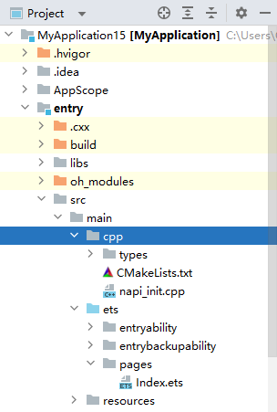 在工程entry/src/main目录下会包含cpp目录,该目录文件的详细介绍请参见C++工程目录结构。