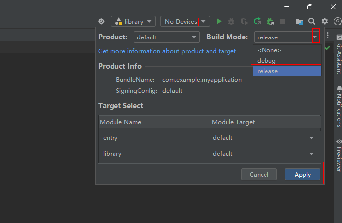 (2) 配置release模式。