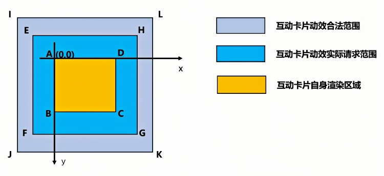 - 互动卡片执行动效期间,超过卡片自身渲染范围(对应图5中的矩形ABCD)的交互事件,互动卡片不做响应。