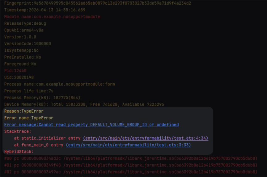 检查 FormExtensionAbility 的导入链,将涉及上述模块的文件与 ArkTS 卡片使用的文件拆分,避免被 FormExtensionAbility 加载。