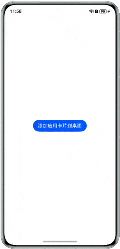 下面给出示例,实现如下功能:在应用内点击“添加卡片到桌面”按钮,拉起卡片管理页面。用户可在卡片管理页面,点击“添加至桌面”按钮,此时在桌面即可看到新添加的卡片。
