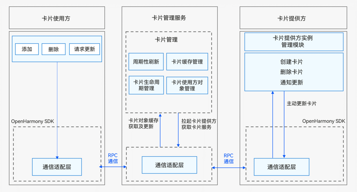 - 通信适配层:负责与卡片使用方和提供方进行RPC通信。