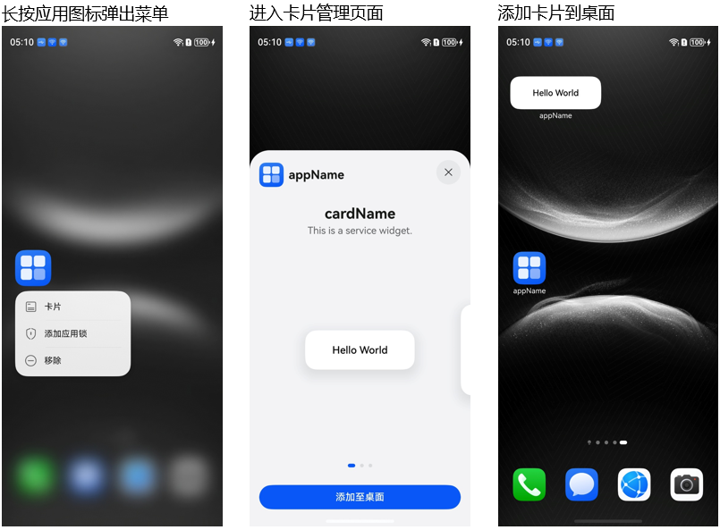 - 支持卡片使用位置:用户可以在桌面、锁屏等系统应用上添加使用,不支持在普通应用内嵌入显示卡片。