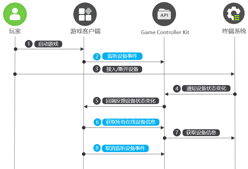 - 终端系统将设备状态变化通知Game Controller Kit。