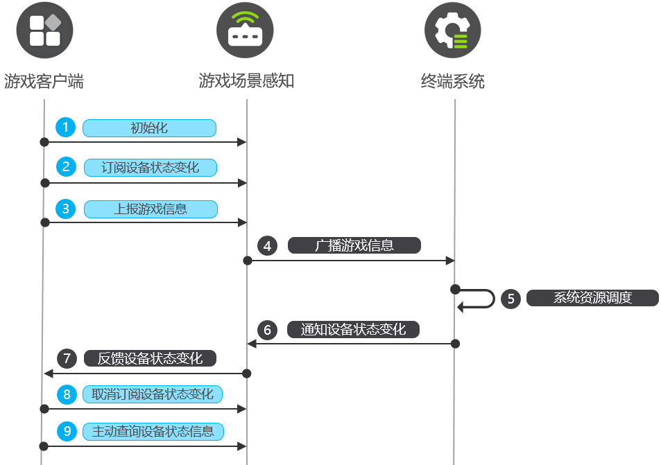 终端系统会将设备状态变化通知游戏场景感知。