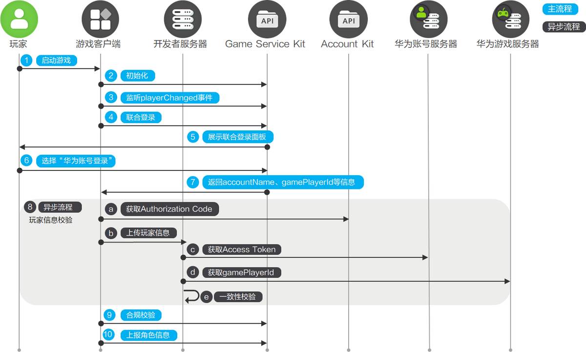 接入华为账号登录的接口调用流程如下: