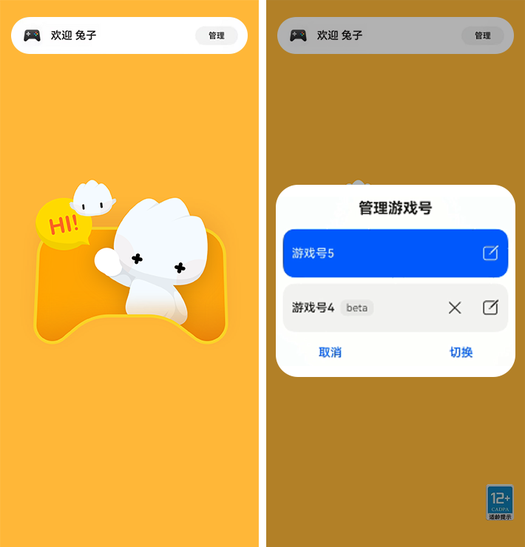 接入角色交易、或存在多个游戏号的游戏,玩家成功登录后会在顶部欢迎横幅出现“管理”按钮。