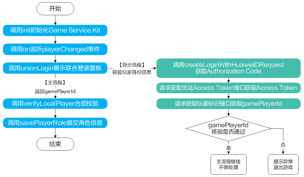 由于unionLogin接口返回的gamePlayerId存在被篡改的风险,建议在开发者服务端核验玩家信息,即从开发者服务器获取gamePlayerId与unionLogin接口返回的gamePlayerId做比对,确保玩家信息一致性。若无服务器,无需校验一致性。