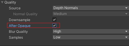 方案1:调整渲染管线,将SSAO作为“后处理”,SSAO不受DrawOpaqueObjects绑定的Buffer分辨率影响。