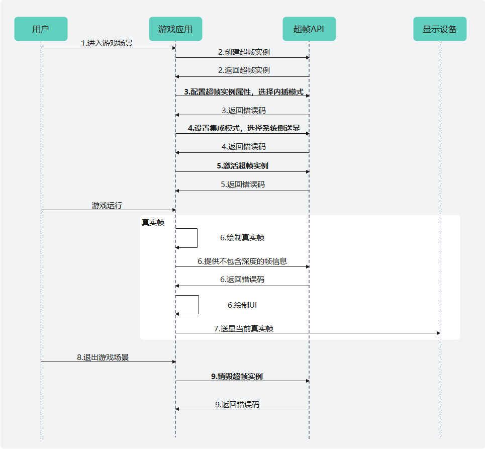 AI超帧调用流程上依赖系统送显模式功能,但与基本的系统送显模式相比,无需调用新方法,只需要在传输帧信息的时候不传输深度信息即可。