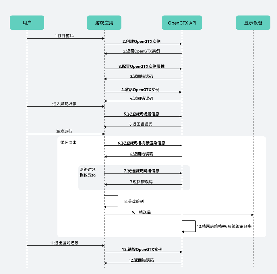 - 游戏应用调用HMS_OpenGTX_Activate接口激活OpenGTX上下文实例。