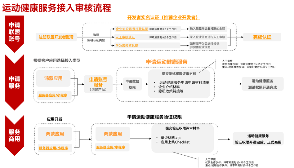 - 提交运动健康服务测试权限申请前,请先查阅开发者申请资质说明和申请被驳回的常见问题。