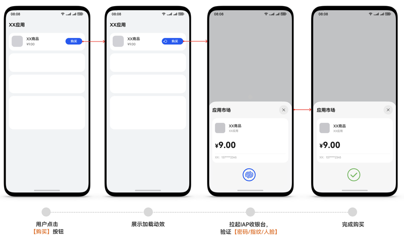 - 建议应用在商品购买页拉起IAP Kit收银台时,展示加载动效,保证应用购买的流畅性,提升用户体验。