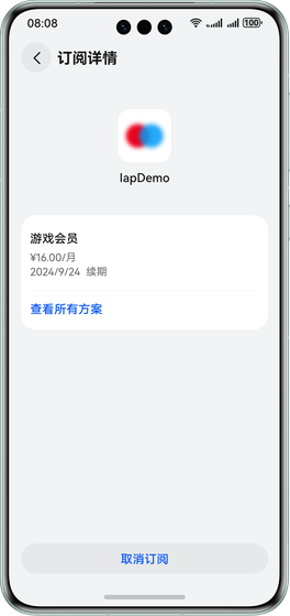 | 撤销 | 否 | 撤销订阅成功,订阅权益会立即取消(用户及开发者无权限操作)。 |