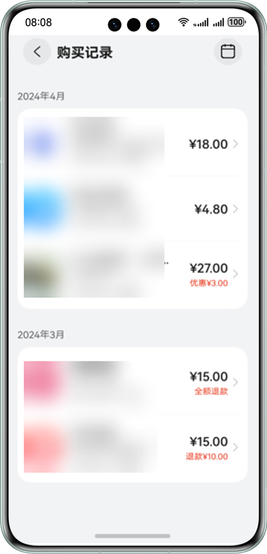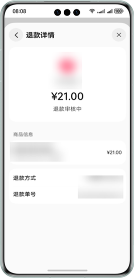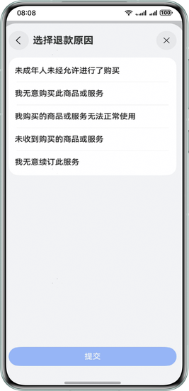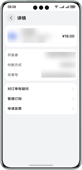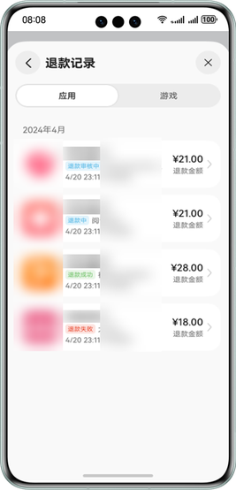 若用户购买应用内数字商品后需要申请退款,可选择某笔订单后根据页面指引,提交退款信息。开发者审核完成后,用户可收到退款金额。