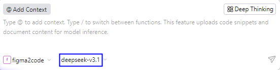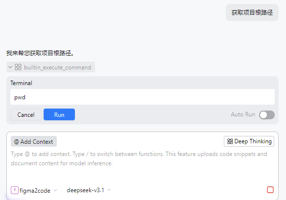 - 在对话区域输入"/"调出命令,选择自定义的Agent(如figma2code)。