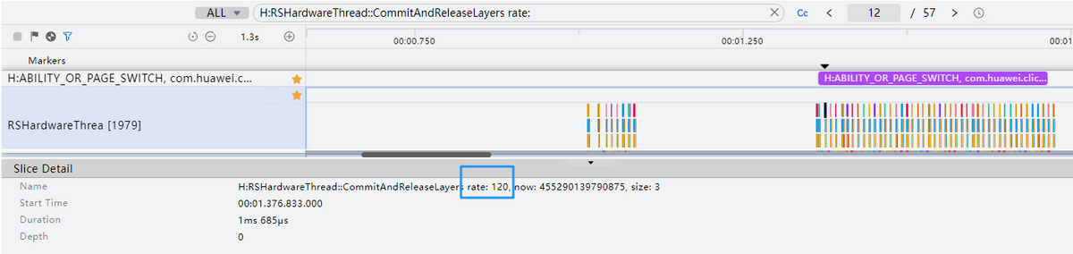 刷新率:在泳道范围内查找关键词H:RSHardwareThread::CommitAndReleaseLayers rate,如下图: