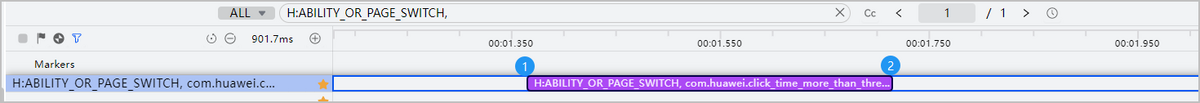 结束时间:以ABILITY_OR_PAGE_SWITCH转场泳道为例,泳道的终点(如图标记2)。