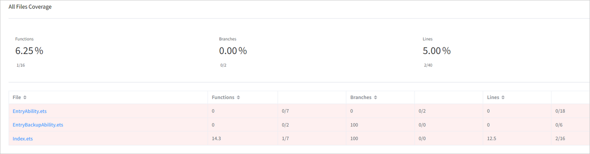 - coverage:是否生成覆盖率报告,缺省默认是true,在<module-path>/.test/default/outputs/test/reports路径下生成两份报告,一份是html格式(index.html),一份是json格式(coverageReport.json),具体参考查看覆盖率报告。