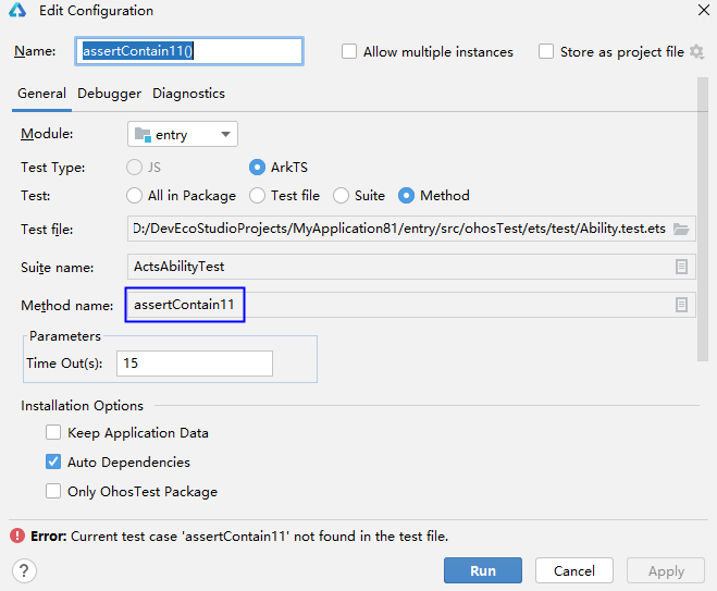 在运行配置窗口修改Method name。