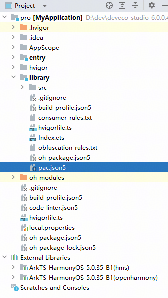 开发HSP或HAR情况下,选中HSP或HAR模块目录新建pac.json5文件。