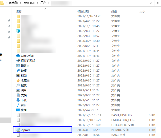 进入C:\Users\用户名目录,打开****.npmrc文件。如果该目录下没有.npmrc****文件,请新建一个。